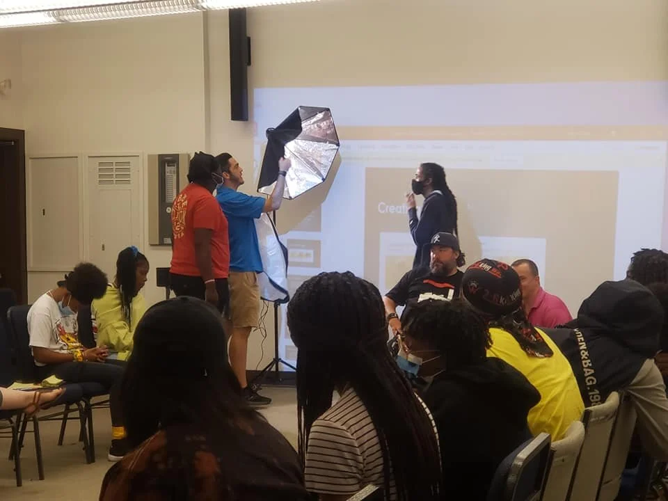 2021 Youth Filmmaker’s Workshop lighting lesson with instructors Pablo Correa and Kyle Jones and guest Wright Thompson, ESPN Writer.